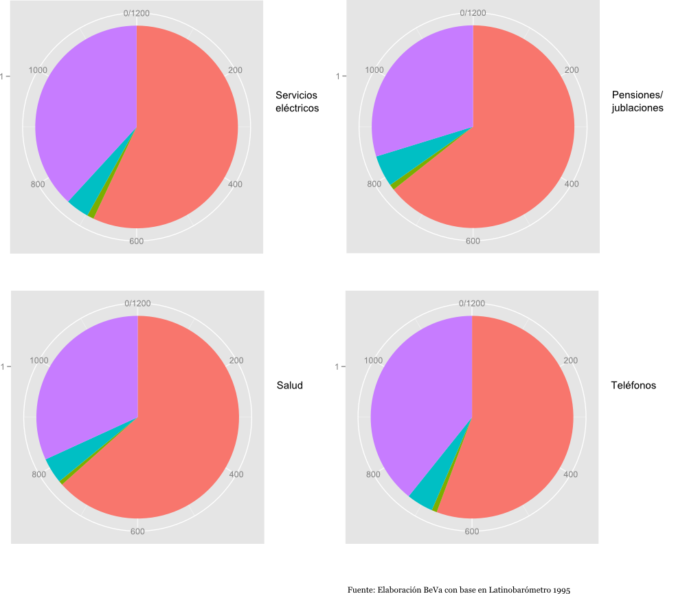 En 1995 los venezolanos eramos favorables a que el estado manejara servicios que, viéndolos detenidamente, pueden considerarse básicos. Observamos que sólo para el caso de los servicios eléctricos y telefónicos, personas consideraron, en mayor número, sin por ello ser mayoritaria, que deberían estar en manos del sector privado