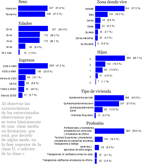 Como parte de las aspiraciones, estas personas desean mejorar su calidad, siguiendo moldes de ascenso conocidos: por desplazamientos sucesivos. Así, chacao, altamira, el hatillo, son urbanizaciones que podrían representar el siguiente paso en la escalera de ascenso social.Lo mismo puede decirse para el sueldo y el nivel educativo aspirado. Igualmente, como parte de ese proceso de ascenso, las personas parecen rechazar algunas características propias del nivel social que están dejando atrás: mucha gente, la desorganización, la lejania, la falta de servicios, la estrechez, y parecen asociar estas cosas con inseguridad.